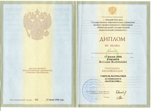 Квалификация: учитель математики, по специальности "Математика"