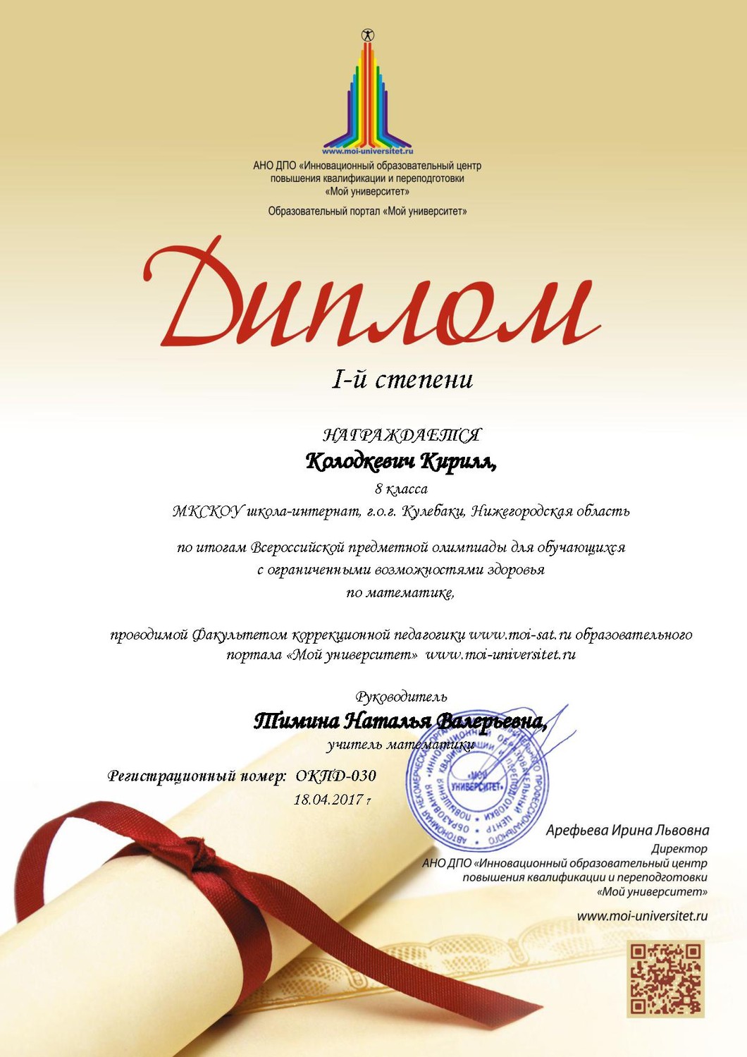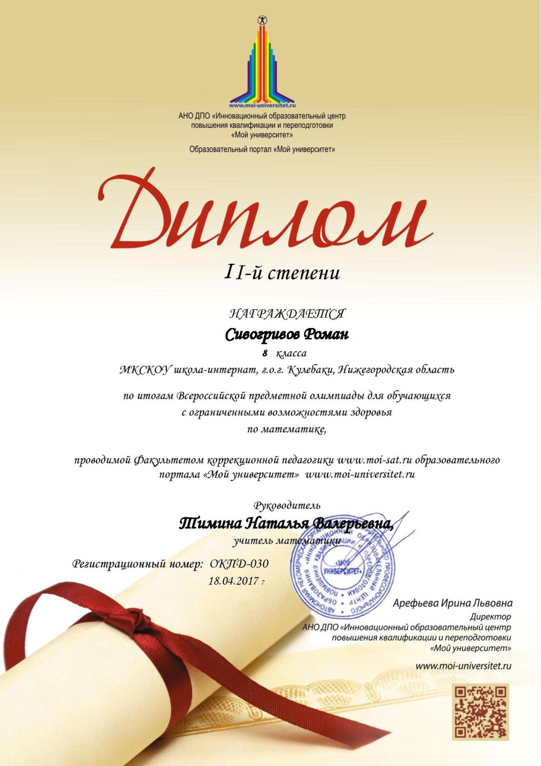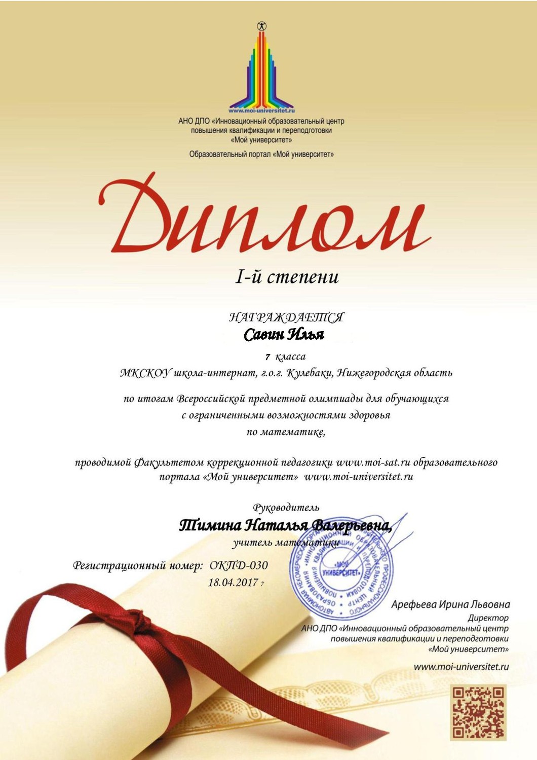 В апреле месяце обучающиеся приняли участие во Всероссийской предметной олимпиаде для обучающихся с ограниченными возможностями здоровья по математике, проводимой Факультетом коррекционной педагогики образовательного портала «Мой университет».