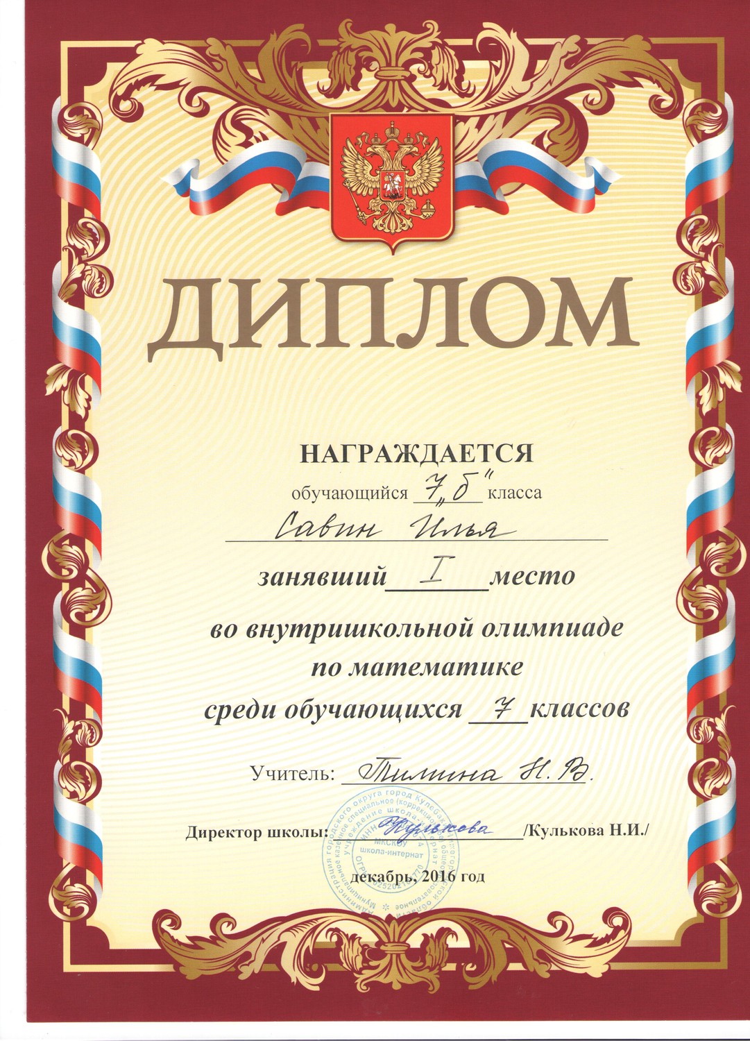 Пантелин М. 8 «б» I Савин И. 7 «б» I