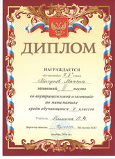 Шмакова Я. 8 «б» II Мигунов М. 7 «б» III